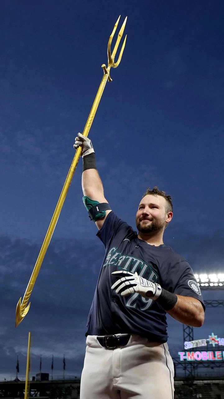 The Trident—I don’t know if it’s because the team did actually hit a lot of home runs this year or what, but that tiresome fork didn’t bug me as much this season as it has in the past. Funny how winning changes things! While a lot of teams have done away with these dugout talismans, the Trident is still on the Mariner roster. I do think they need some PR consultation where some of the other stuff is concerned, however. National media loves running stories about dark horse’s endearing B-market customs, but you can’t run parallel with the mustaches, the witches, the Trident and the shoes-on-the-head. Choose one and play it– but don’t expect national audiences to embrace every quirk, no matter how adorable. The Trident who?