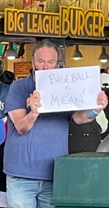 always think the Mariners are going to win the World Series until the pitch on which they are eliminated for the season—even when that’s been in June. This year it wasn’t until the end of game 7 of the ALCS. And yes of course that is something.                                                                                                                      I do hope there’s a grown-up in the room at some point during spring training 26, however, who will motivate these boys to re-visit the some of the classics like catching the ball, throwing to the right base, bunting, and not getting picked off third. Home runs are bitchin’ but a bunch of balls taken smoothly the other way pencil out the same in the scorebook. I know it’s a lot to expect, but being a team that puts the ball in play (TOR25) sometimes has a better chance of winning a pennant than the team that hits home runs a lot but then can’t score after a leadoff double when the season’s on the line (SEA25).                    There is much to be optimistic about looking forward. The rotation should be as good as any in the game. They have stars under contract and with any luck they’ll sign another in Naylor. Hopefully Mitch Garver is playing elsewhere and that he takes Luke Raley with him. They may well have the steepest home-field advantage in the sport.                                                                                                                                                                                                                                             But we can’t pencil in 60 for Cal again—he won’t be pitched to like he was for a lot of this year. Someone on the pitching staff is going to be injured and miss half the season. How are matters going to take shape at second and third base? Who knows when the best Julio Rodríguez is going to show up…                         A baseball season is a long prospect. It starts in early February and doesn’t end until November if you’re good. If you make sweet love to and impregnate your darling one (does not matter if you are married to her or not) on the first day of spring training, she might give you a son on the last day of the World Series. And there’s only three months of leave available before you have to get back in the dugout with those dudes that are all dressed the same as you.